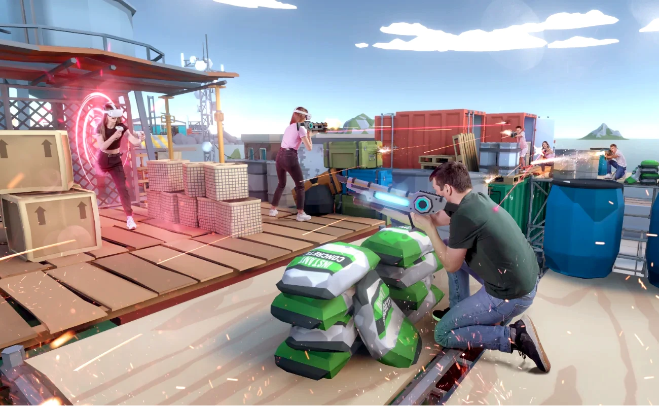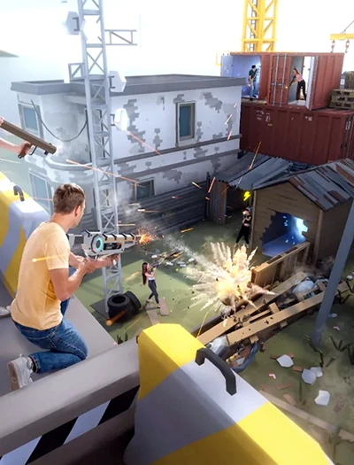 Захватывайте базу и разрушайте постройки. Перемещайтесь между площадками и используйте автобус как укрытие. Оттачивайте меткость и реакцию. Почувствуйте атмосферу веселья и станьте чемпионом в незабываемом VR-приключении!
